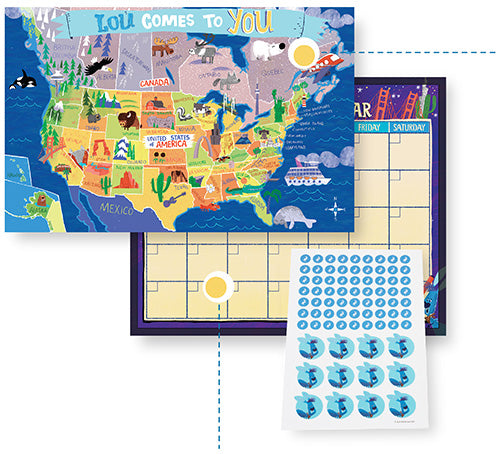 Complete with a Lou Comes to You book, Lou plushie, dry erase calendar, a voice recorder, and a map with stickers - Lou’s Travel Toolkit is an all-in-one resource to help children cope with all the feelings that arise when a parent travels.